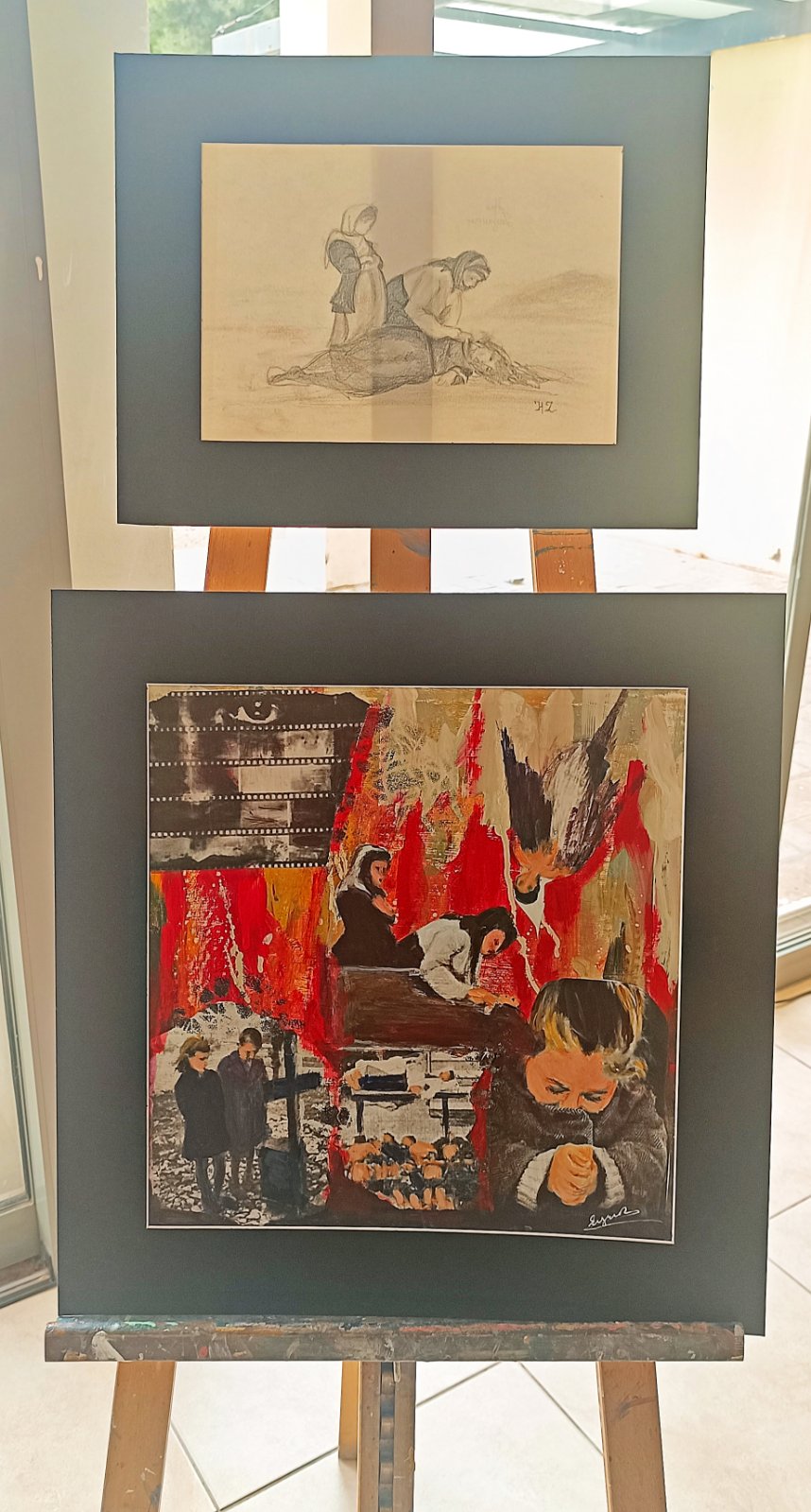 Οι πίνακες στις φωτογραφίες εκτέθηκαν στην έκθεση ζωγραφικής με θέμα τη Γενοκτονία των Ελλήνων του Πόντου, με έργα των μαθητών του Α΄ Εργαστηρίου Ζωγραφικής Ενηλίκων του Δήμου Βριλησσίων, υπό τη διδασκαλία του κ. Δημήτρη Σκλείδη, τα οποία εκτέθηκαν την Παρασκευή 16 Μαΐου στο πάρκο «Μ. Θεοδωράκης» στο πλαίσιο των εκδηλώσεων Μνήμης της Ένωσης Ποντίων Βριλησσίων «Οι Τραντέλληνες».